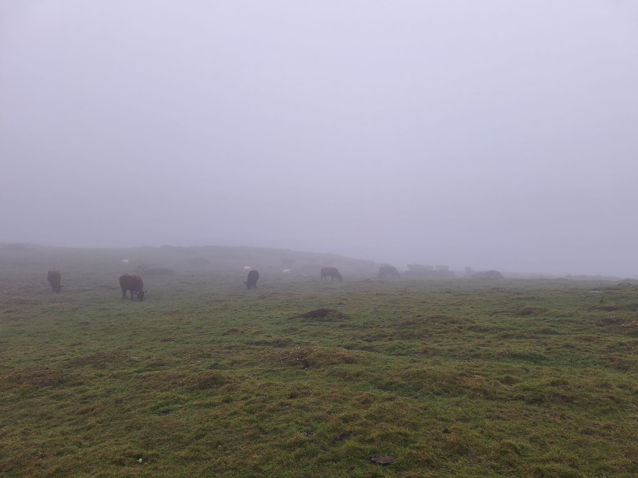 On a grey, foggy, damp January Sunday morning seven brave members (and one dog!) met at Mitchell’s Fold car park for a walk along Stapley and down into Black Marsh. Everyone waterproofed head to toe we proceeded through the drizzle up through the stone circle and along Stapley Common, with visibility at around 10 metres there was not much wildlife to spot except a few interesting lichens clinging to rocks, trees and gorse. To extend the walk the group proceeded down into the shelter of the woodlands on Black Marsh, conversations about the rich array of birds present in the woodland was had…however not a song was heard on this grey morning. Back up onto Stapley hill the group walked up to the cairns marking the highest points of the ridge before heading back down to the car park (with a little detour due to the disorientation of the fog!).