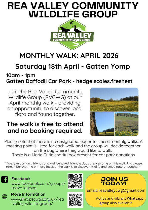 Katherine Edwards-White, Rea Valley Community Wildlife Group Secretary Email: reavalleycwg@gmail.com